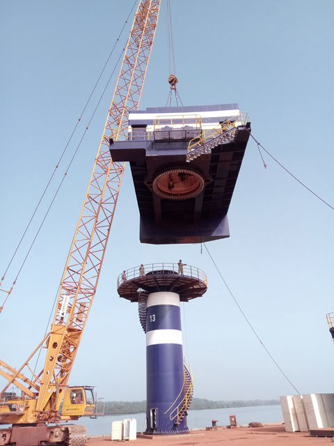 業(yè)主方急于生產,為了滿足客戶需求,打好公司“一帶一路”非洲這一仗,項目組和施工隊一直在跟時間賽跑,時間不夠就一起加班;人手不夠,項目經理帶領質檢及工藝人員幫忙,擰螺栓、掄大錘、拉鋼絲繩,時間上能搶一點是一點;遇到問題,解決問題,大家群策群力,方法總比困難多。就這樣,我們使前2臺的安裝計劃時間一再壓縮,從最初的50天壓縮到40天,再到最后的35天交付業(yè)主投產。我們的努力獲得了客戶認同,作為項目合作方的煙臺港技術處曲處長不禁贊嘆道:“你們詮釋了中國速度!”